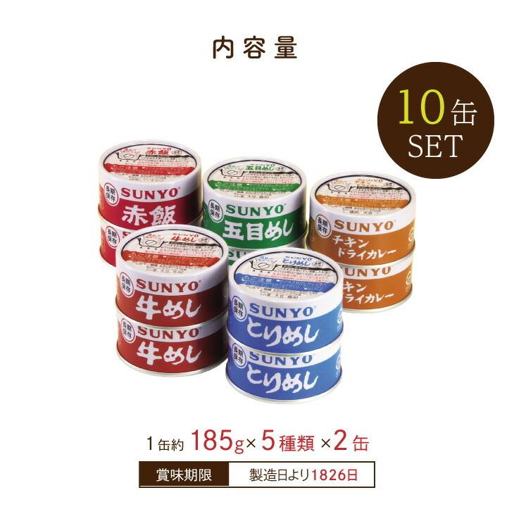 缶詰 ごはん 5種セット10缶 サンヨー 非常食 備蓄 食料 災害用 牛めし缶 とりめし缶 五目めし缶 赤飯缶 チキンドライカレー缶 5年保存 常温保存 送料無料 A23658 マックスレックス 通販 Yahoo ショッピング